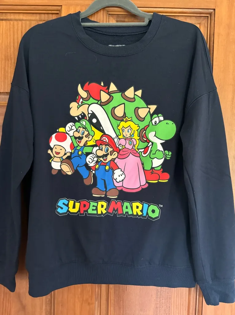 Super Mario Graphic Sweatshirt Women's XS Nintendo Long Sleeve Navy Blue - $14 - From Crystal