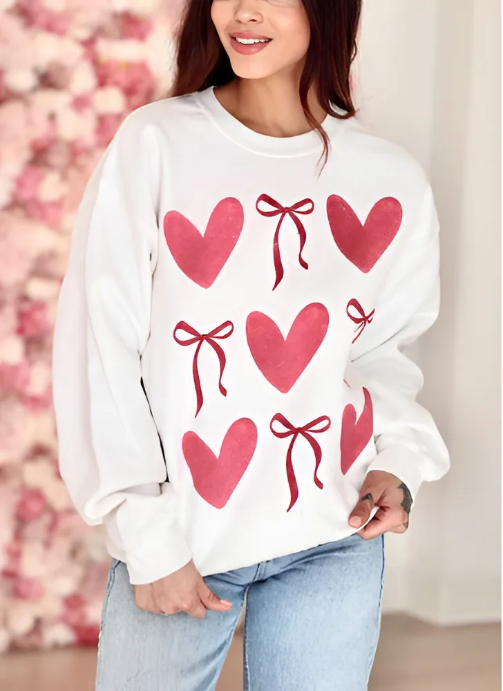 Super Mrkt. Womens Lounge Romantic Valentines Day Bow Heart Sweatshirt in White. Size Small / Medium... Show more