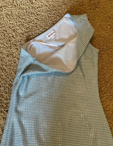 - worn once - super cute light aquamarine blue - metallic detailing - stretchy - was super comforta... Show more