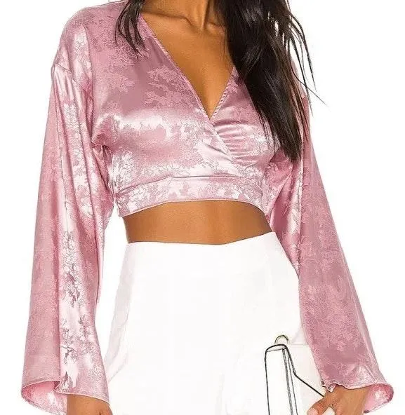 superdown Silky Pink Floral Bell Sleeve Top Size XS - $22 (60% Off Retail) - From Emily