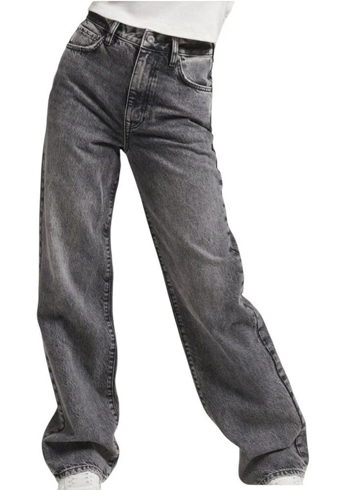 Rejuvenating your denim collection with a retro-led aesthetic, these wide-leg high-waisted jeans from Superdry are made from organic cotton for a long-wearing piece Size 26x30 Rise - High Denim Style - Vintage Fit or Cut - Wide Leg Color: Lenox Grey Composition 100% organic cotton Country of Origin Turkey New with tags 13.5” waist 17.75” hips 11.75” rise 32” inseam 9.25” leg opening (27)