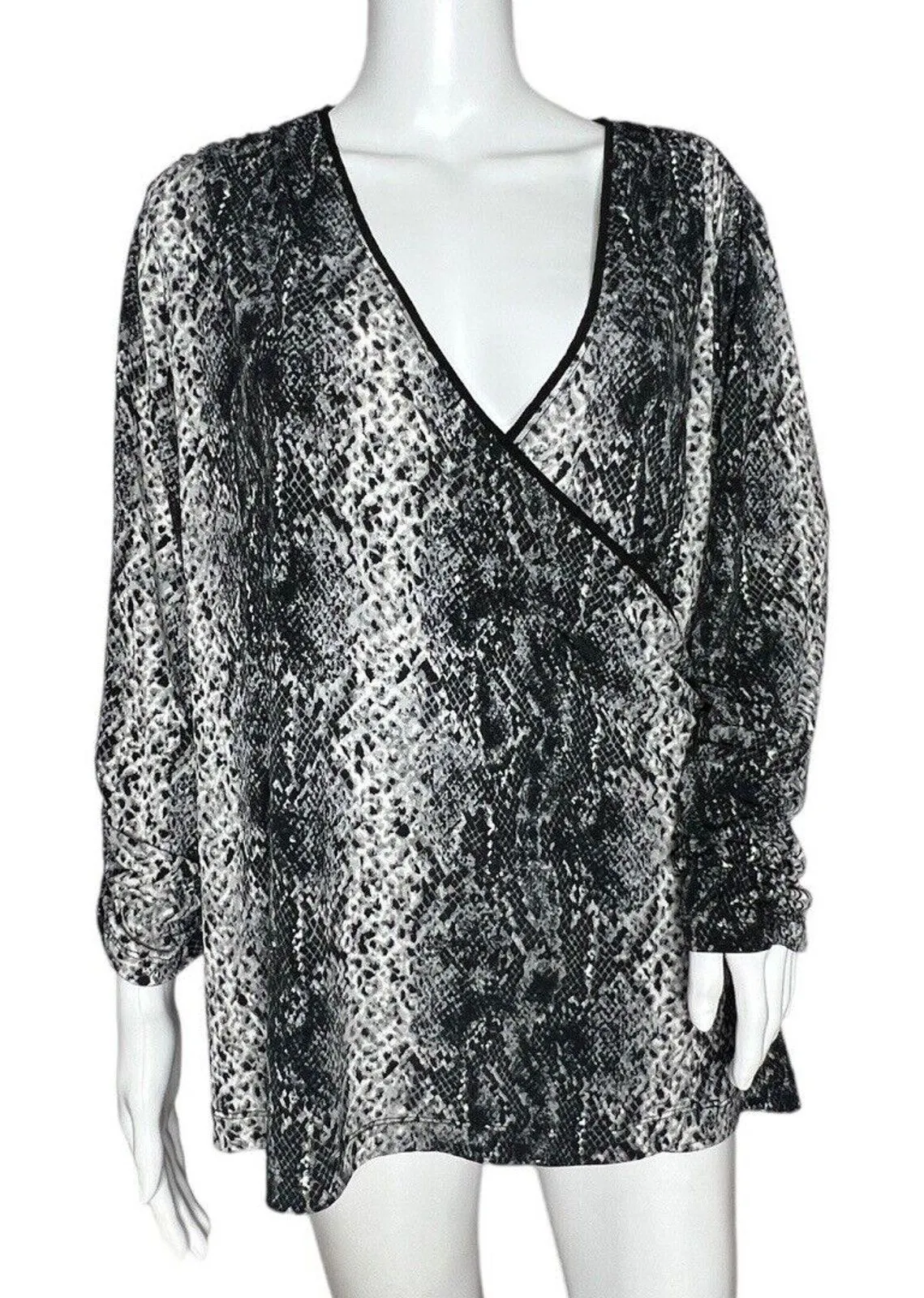 Susan Graver Shirt Womens Large Gray Black Snake Print Surplice Edgy Rocker Women’s Size Large Sur... Show more