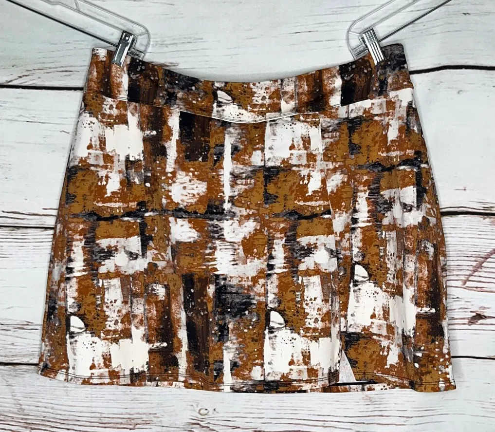 Susan Graver Size 20W White - Brown, Black, Orange, Yellow & Gray Abstract Print Swim Skort - Skirt... Show more