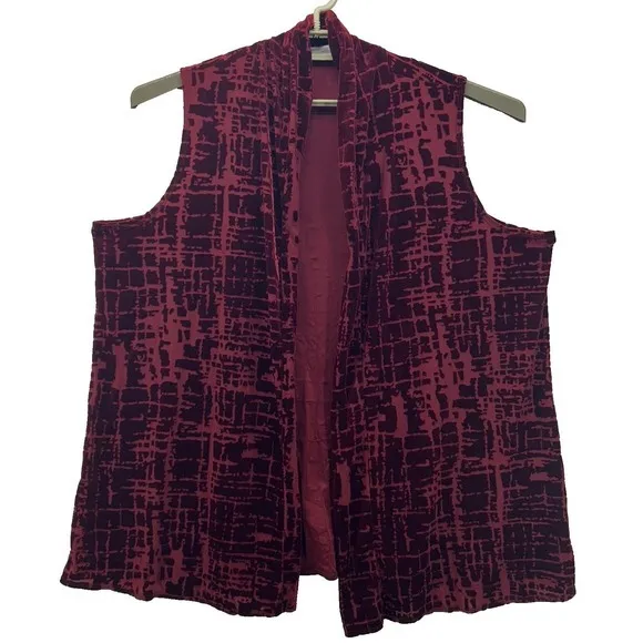 Unleash your inner style maven with this sleeveless cardigan. This maroon duster adds a touch of sophistication and drama to any outfit. The open-front design allows for effortless layering, while the soft velvet material creates a luxurious feel and texture. This unique piece offers both comfort and style, making it a standout addition to your wardrobe. Measurements: • Pit to Pit: 26 inches • Length: 33/31 inches Thank you for checking my item. If you have any questions before and after purchase, please contact me first. Items came from smoke free, dog friendly home. I use a fabric softener that has fresh scent smell. Please check measurement before buying. My handling time is 1 business day. Have a great day!!!!!