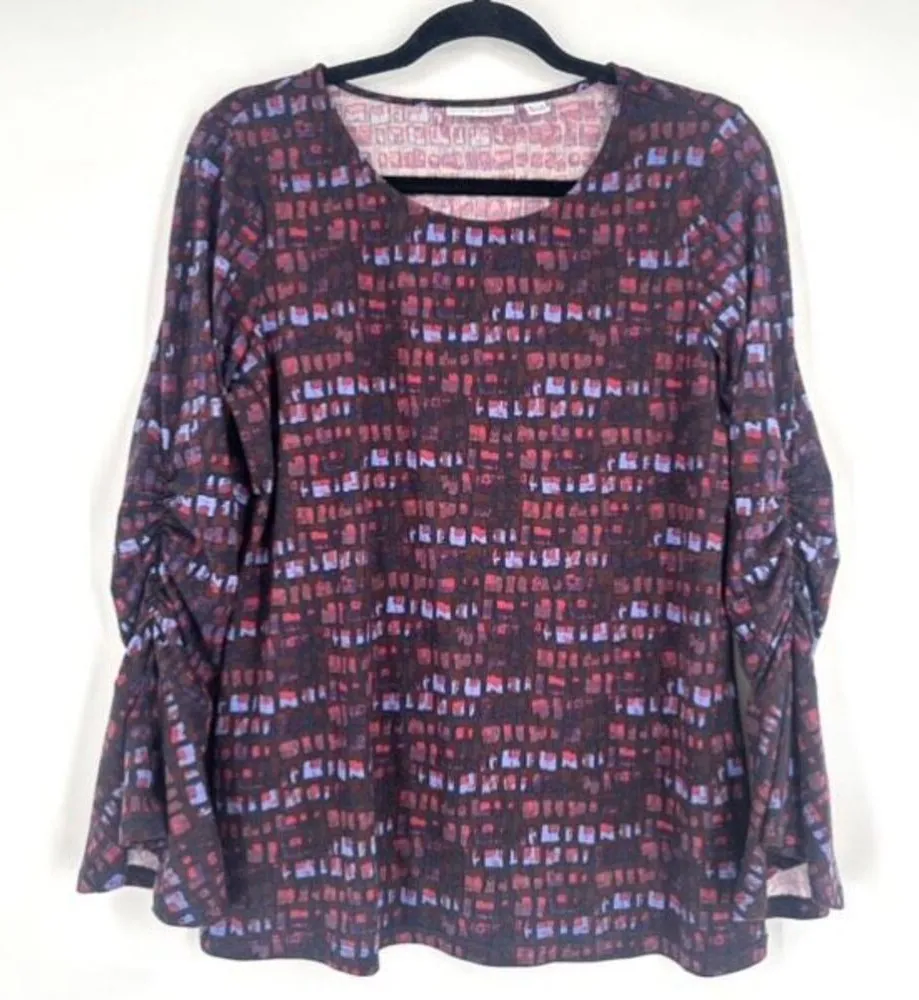 Susan Graver Geometric Stretch Knit Bell Sleeve Blouse Small Dark Romantic Good pre-owned conditio... Show more