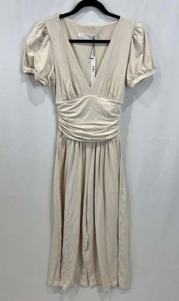 Susana Monaco V Neck Jumpsuit Size Small Beige (Almond)‎ Wide Leg Ruched Stretch - $25 New With Tags - From Jennifer