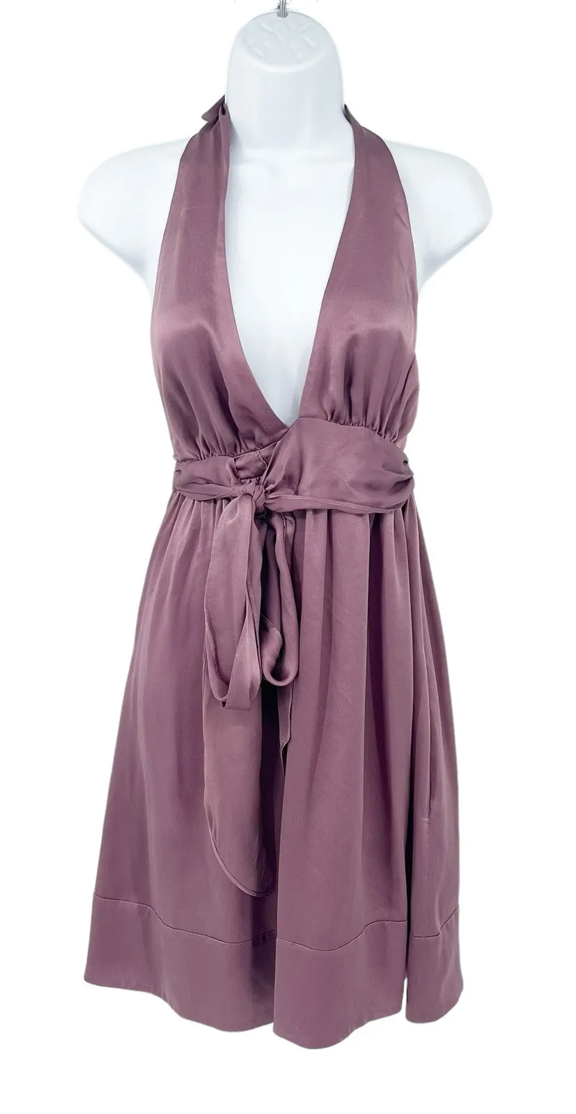Susana Monaco Womens 100% Silk Y2K Plunge Halter Neck Mini Slip Dress in Mauve Purple. Size 2. Good... Show more