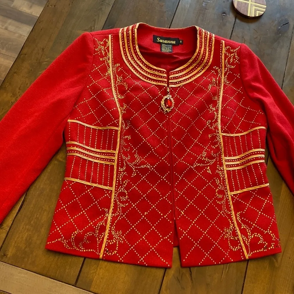 This gorgeous and jazzy sweater jacket is a statement Size 14 Full zip There are some spots that are missing the jewel but you cannot tell if you’re not looking for it. Vintage