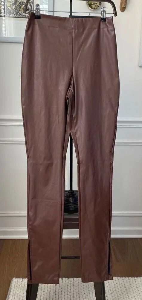Falls hottest trend: brown faux leather polyurethane, high-rise pants with ankle vents that measure... Show more