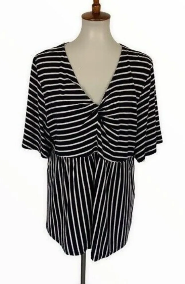 Suzanne‎ Betro Striped Twist Front V Neck Short Sleeve Flowy Tunic Top 2X Blue White - $18 - From Rodica