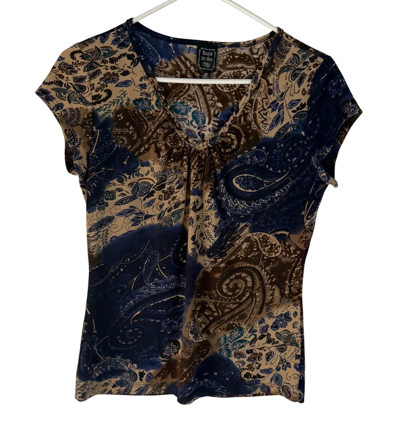 Suzie in the City Y2k Paisley Print V Neck Short Sleeve Top M Brown Blue Boho Type: T-Shirt Departm... Show more