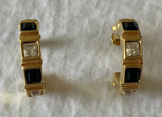 Preowned: Good condition outside These elegant hoop earrings feature a stunning combination of gold and black, perfect for adding a touch of sophistication to any outfit. Ideal for both casual and formal occasions.