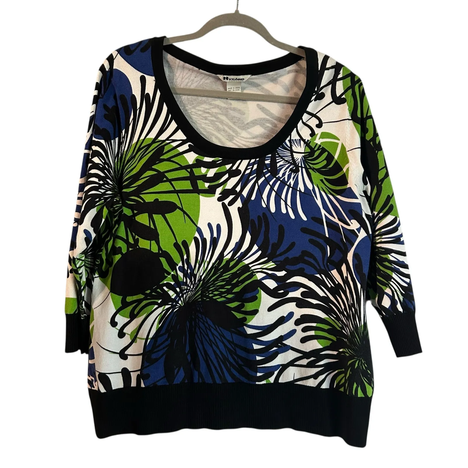 Beautiful bold and colorful top. Jersey Knit type material. Has design of floral and abstract. Ribbe... Show more
