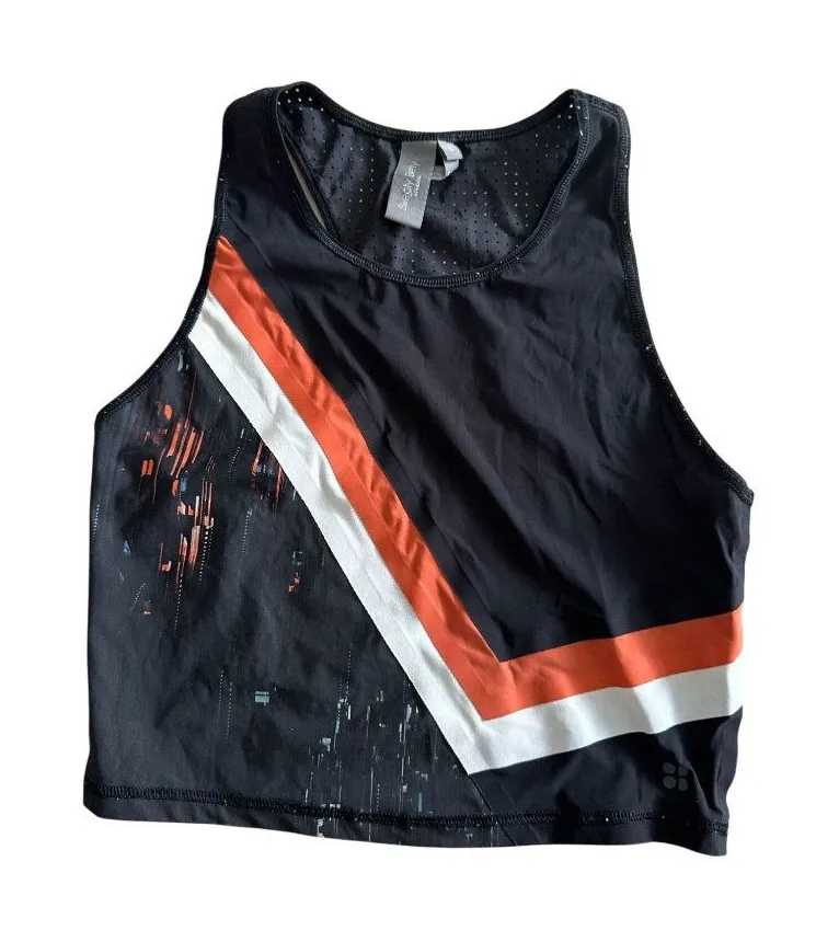 Crafted for style and comfort, this Sweaty Betty tank top features a chic black stripe design, perfect for workouts or casual wear. Its lightweight fabric ensures breathability and ease of movement. Ideal for fitness enthusiasts or trendsetters. • Stylish black striped design • Lightweight and breathable • Perfect for workouts or casual wear • Comfortable fit • Ideal for fitness enthusiasts Condition:Great Pre-Owned Good Features: • Tank Top Size: Womens S