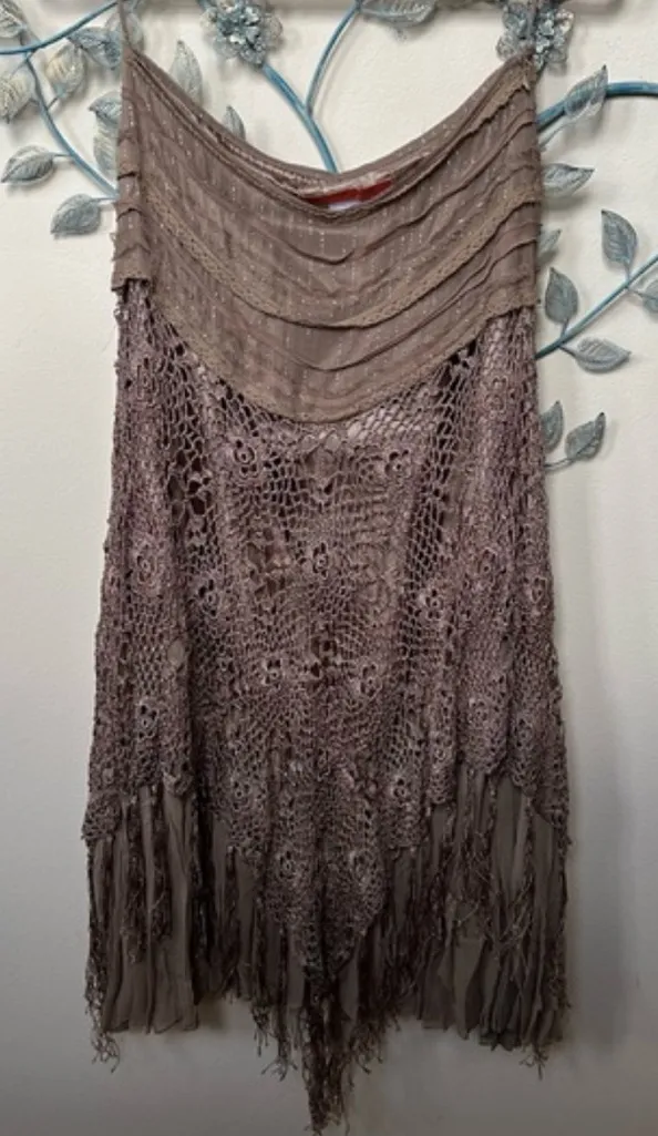 Sweet by Miss Me Tan and Brown fringe bohemian skirt with macrame details Size M - $79 - From Tracie