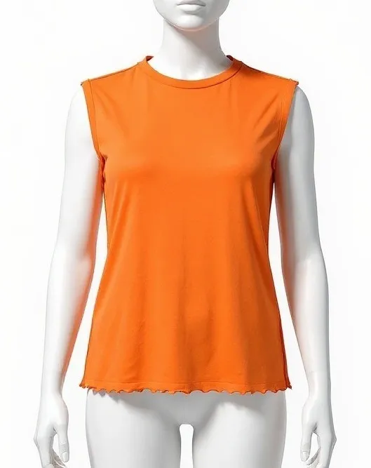 Condition: Excellent pre-owned condition No holes, stains, or fabric damage noted. Key Features: Lightweight sheer mesh fabric Very stretchy and breathable Lettuce-edge hem detail Easy layering piece Cool iron only care Measurements (approx): Pit to Pit: 18" (unstretched) Length: 23" Fabric: Mesh (exact blend tag worn, typical nylon/spandex feel)