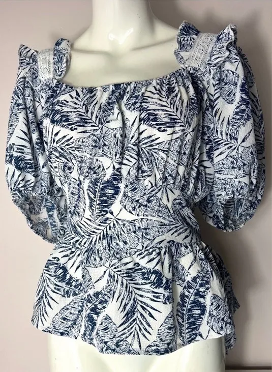Sweet Rain Blue White Floral Leaf Peplum Bow Tie Back Blouse Top Plus Size 2XL Brand: Sweet Rain S... Show more