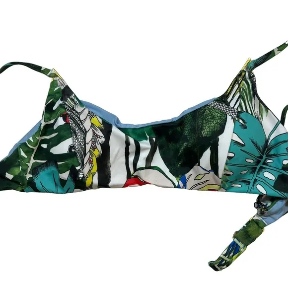 Swiminista x Christian Lacroix Play Top in Jardin Exo Chic Print Size Medium. Designer collaboration Minimalist design Gold hardware Light blue lining Adjustable straps and band Removable pads New with tags