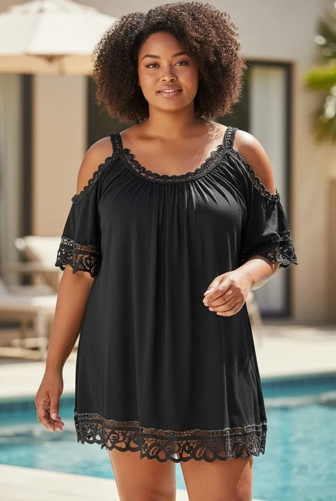 Swimsuit for All Black Crochet Off The Shoulder Cover Up Dress Plus Size 22/24 - $23 - From Adaya