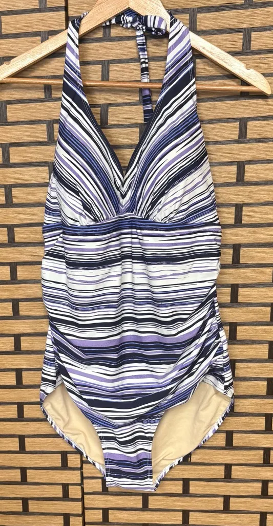 Swimsuits For All Purple And Blue Stripe‎ One Piece Halter Swimsuit Size 16 - $29 - From Cassandra