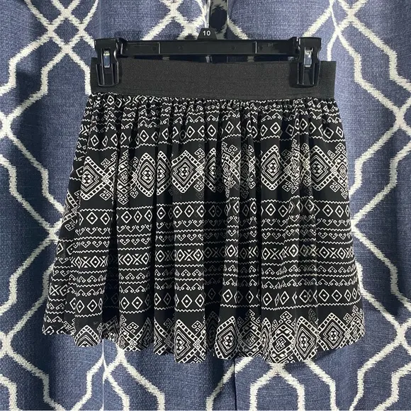 FOREVER 21 Gathered Short Skirt with Black and White Geometric Pattern. It has a stretchy black wais... Show more