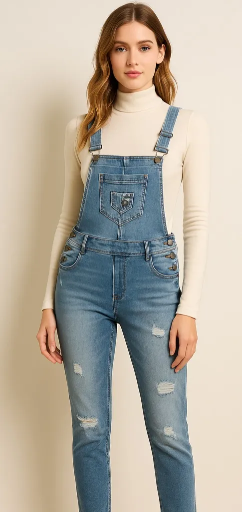 Trendy T&T women’s denim overalls in size 14, new without tags. Features a flattering medium wash, distressed details, adjustable straps, and decorative side buttons with the T&T logo. The front pocket includes a cute heart patch for added style. Great stretch and very comfortable fit. Measurements (approx.): • Waist: 15.6” inches • Rise: 11.5” inches • Front bib length (top to waist): 10.8” inches • Thigh width: 9.2” inches • Ankle opening: 4.5” inches • Length waist to ankle: 35.9” inches Perfect for everyday wear, casual outfits, festivals, or streetwear looks. Smoke-free home.