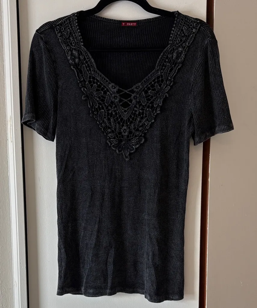T Party Washed Lace Ribbed Shirt Black Size XL - $10 - From Kaitlyn