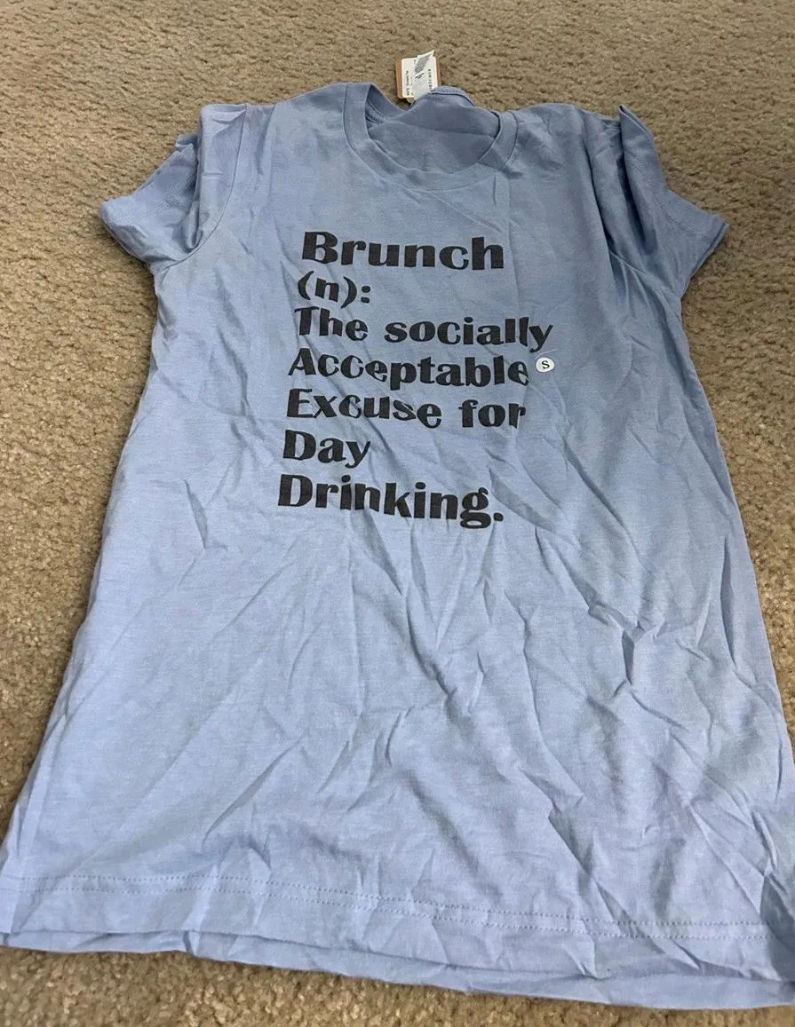 T-shirt woman size small brunch the socially accepted excuse for day drinking Blue - $6 - From Dorota