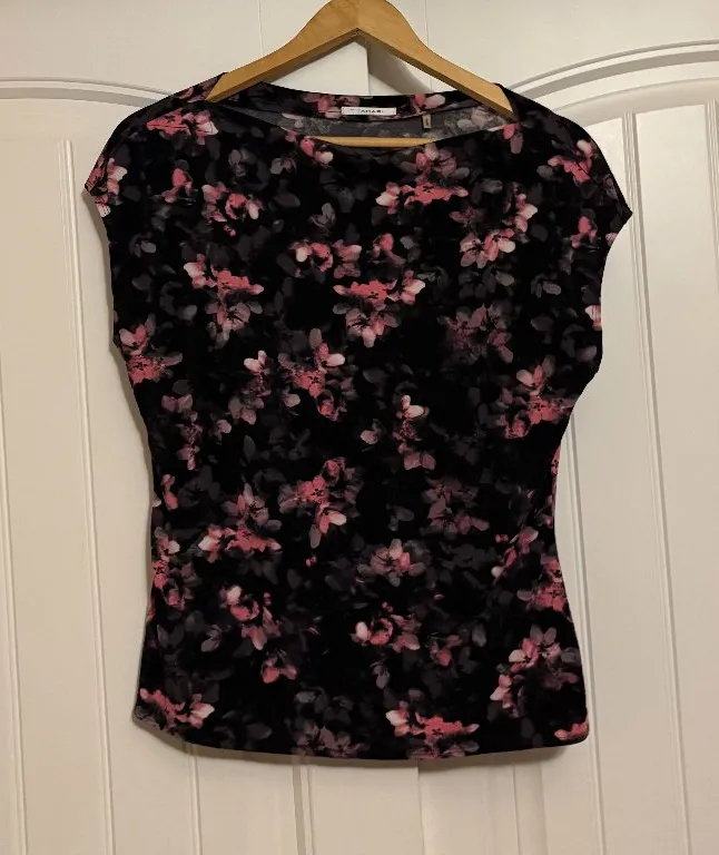 T Tahari Sleeveless Blouse Small Black With Pink Floral Print Boatneck Spring - $15 - From Mary
