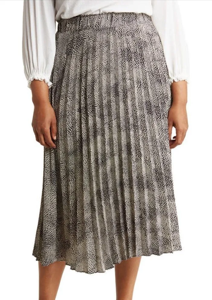 T Tahari Dotted Pleated Skirt A-Line Cream Black Mini Skin Size 1X. A-Line silhouette. pleated throughout. Elastic waistband. Perfect for work! NWT Career, office, work, professional, mature, sophisticated, business, careerwear, Lagenlook, modest, minimalist, industrial, normcore, practical, basic, solid, coastal grandma, minimal, simple, modern, classy, classic, timeless, neutral, retro, grannycore, grandmacore, mid century modern, mcm, old school, nostalgia, nostalgic, mod, Dark academia, preppy, nerdy, country club, school girl, romantic, flowy, soft, Victorian, feminine, girly, indie, hipster, gypsy, folk, shabby chic, folklore,