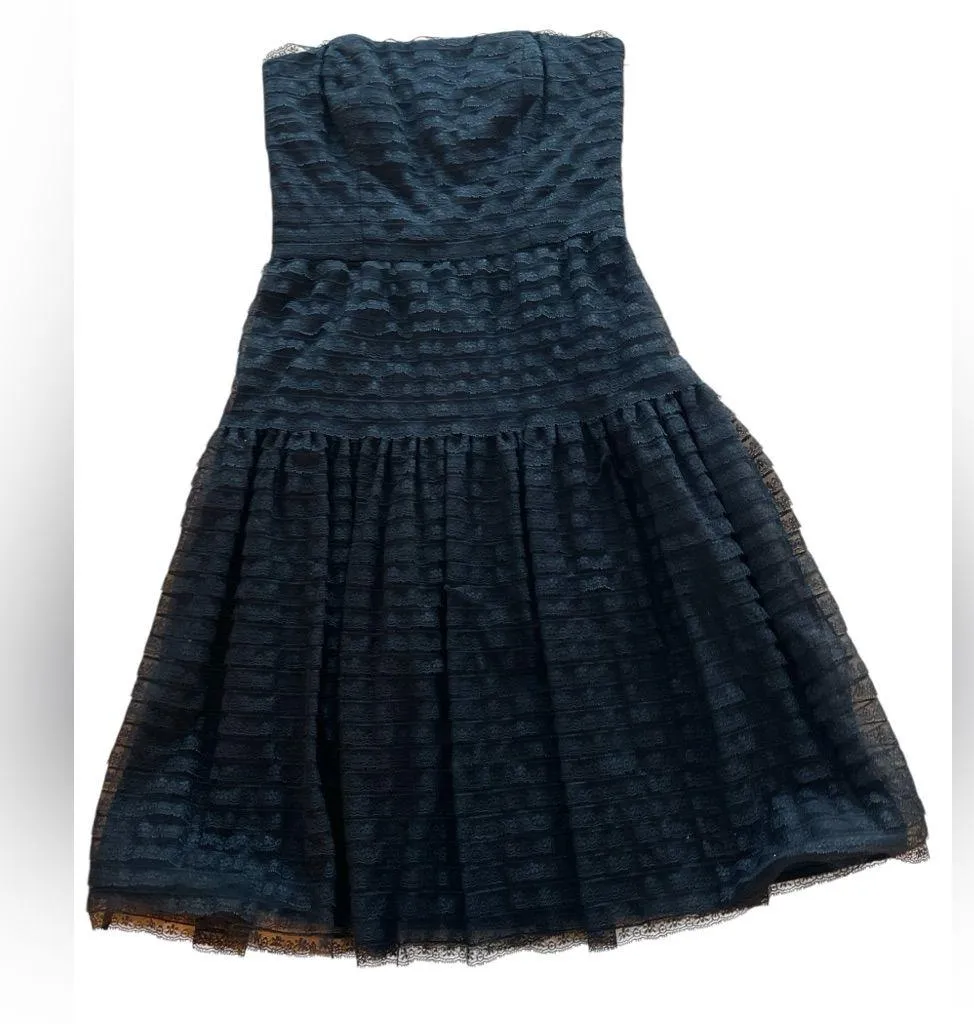 This elegant black dress is perfect for special occasions. Its classic design offers a timeless look that you will love. Size 4 Measurements laying flat Armpit to armpit approximately 14.5” Top of dress to bottom approximately 34” J83