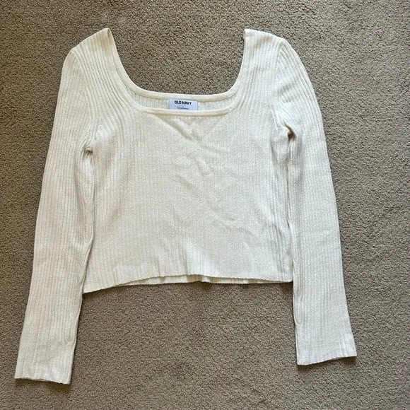 Chic ribbed knit top by Old Navy. Features long sleeves and a square neckline. Perfect for layering.