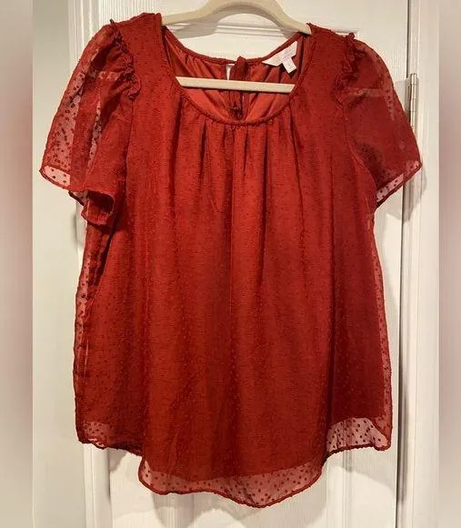 LC Lauren Conrad Womens size small Excellent condition Short sleeve Flowy textured lined brick red c... Show more