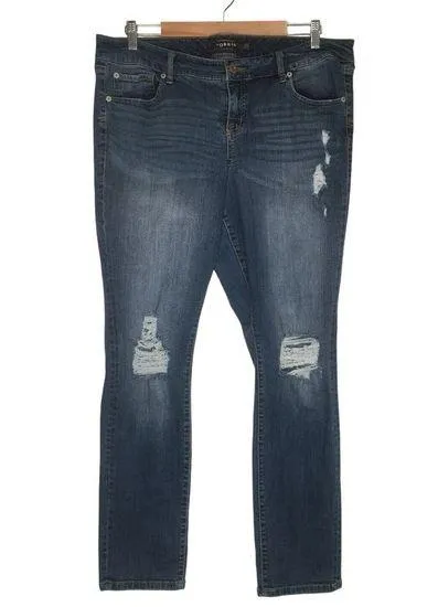 Torrid Jeans Women's Boyfriend Distressed Mid Rise Medium Wash Wiskering Blue Size 16R - 65% Cotton... Show more