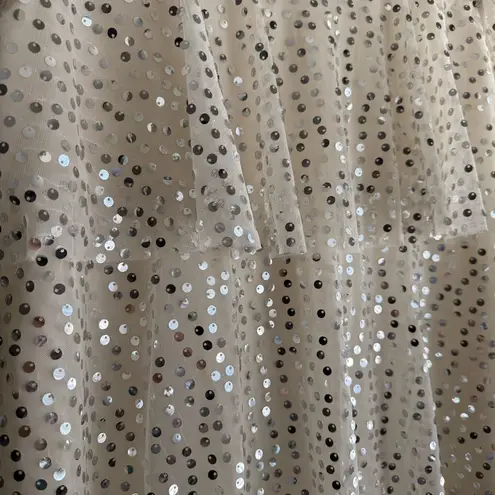 Sequin Ruffle Sleeve Blouse LC Lauren Conrad Size Large White Sparkle Top sparkle top ruffle blous... Show more