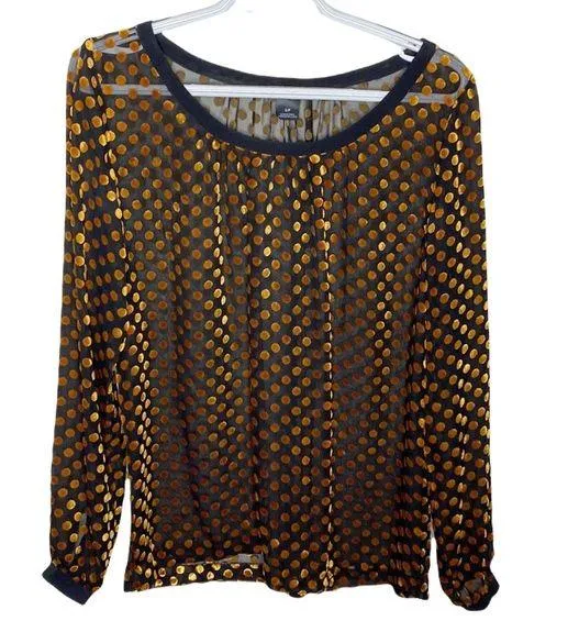 Club Monaco sheer silk blend blouse with velvet gold polka dots Great used condition, size S A gor... Show more
