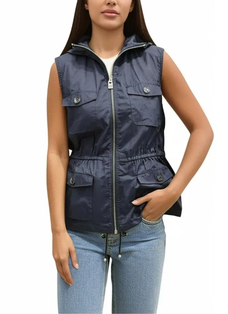 Jones New York Sport Hooded Vest, Women's Navy Blue Zip Up with 4 Clips Casual Utility Size M
