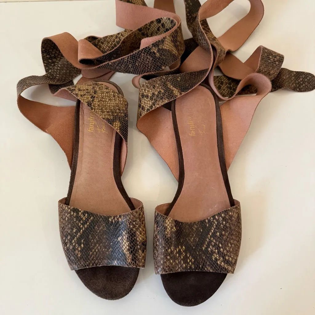 Faryl Robin Free People April Wrap Flat Animal Print Leather Tie Sandals 7 Great condition Light... Show more