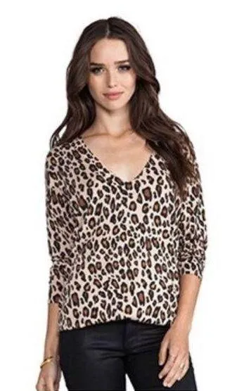 Joie Chyanne Sweater Wool and Cashmere blend Bold leopard print sweater Pullover sweater 3/4 sleeve... Show more