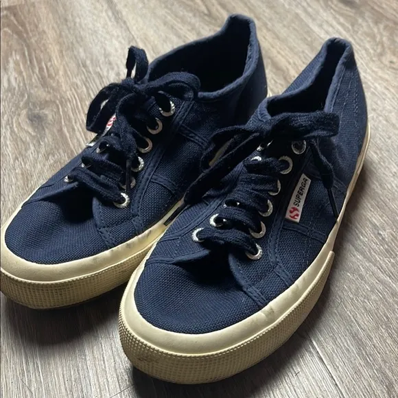 Great preloved condition Superga Cotu Classic Unisex Blue Canvas Sneakers -Stylish black canvas s... Show more