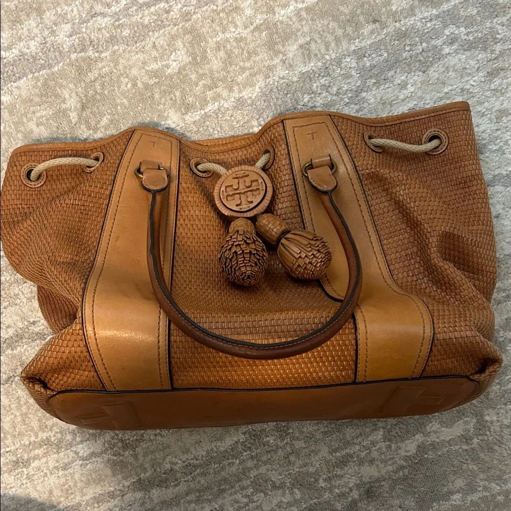 tory burch woven leather tote bag - $350 (41% Off Retail) - From jenna