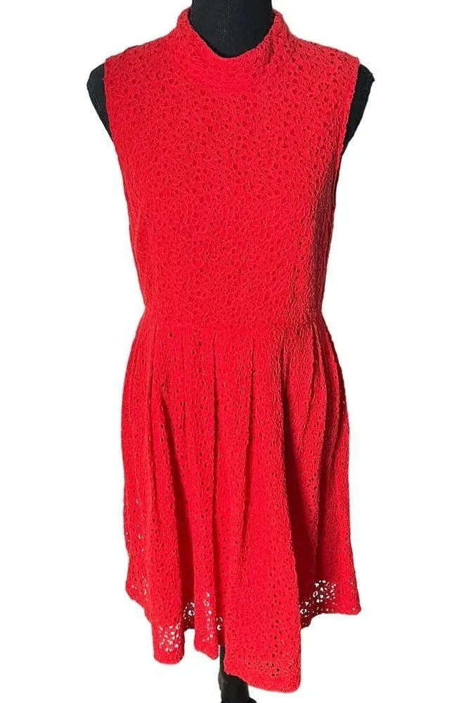 Hi There from Karen Walker Anthropologie Angie Lace Short Mini Dress 6 Women’s Coral. High mockneck... Show more
