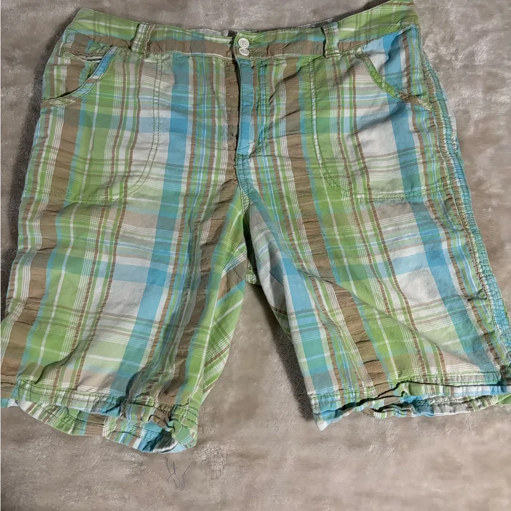 Chic plaid shorts by St. John's Bay. Features green and blue tones. Ideal for casual outings.