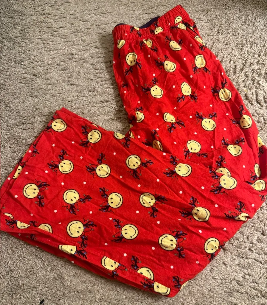 NEW WITH TAGS BRAND - AERIE SIZE - XL Bright red pajama bottoms with cheerful holiday smiley faces... Show more