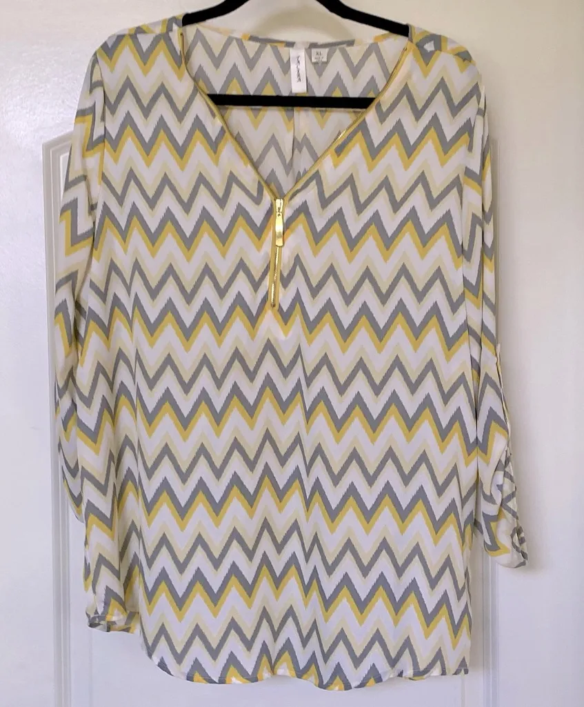 TACERA - Yellow and Grey Chevron Top with Gold Zipper Neckline! - Never worn!💛 Size XL - $9 - From Blair
