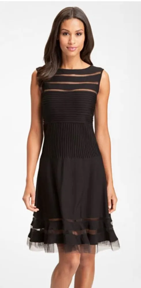 Tadashi Shoji Black A-Line Mesh Stripe Jersey Dress, Small - $46 - From Thrifterellas