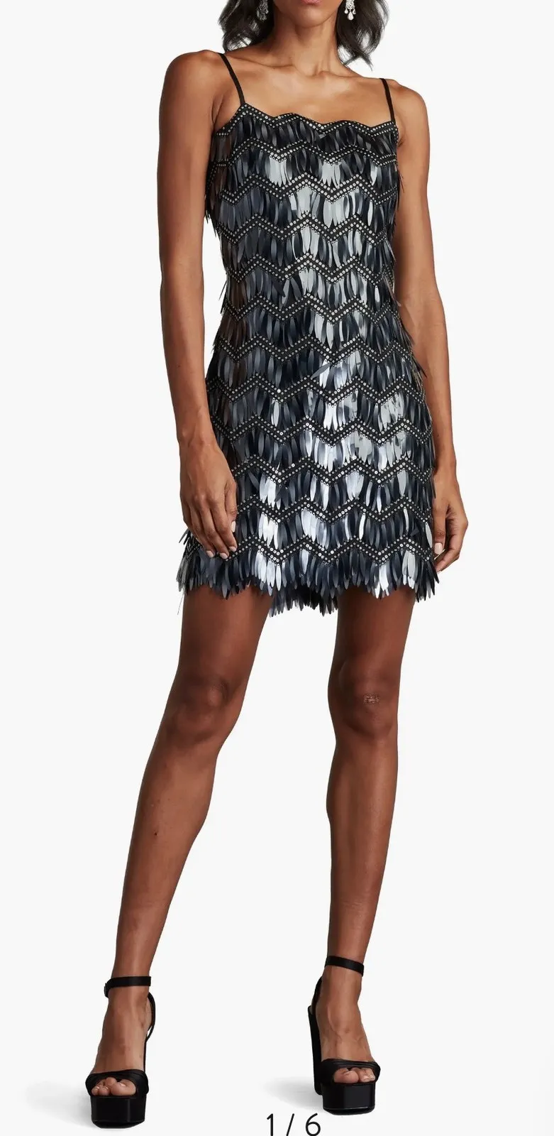 Stunning Tadashi Shoji Colie Sequin Fringe Mini Dress. This dress features beautiful sequin embelli... Show more