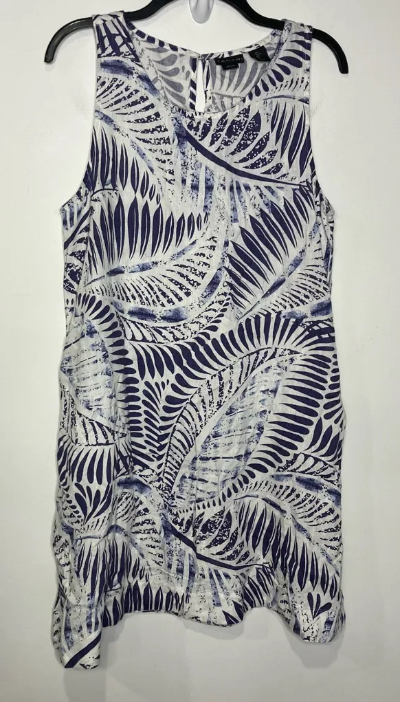 Tahari 100% linen tank dress a-line, knee length, pockets womens size large White with blue/purple... Show more
