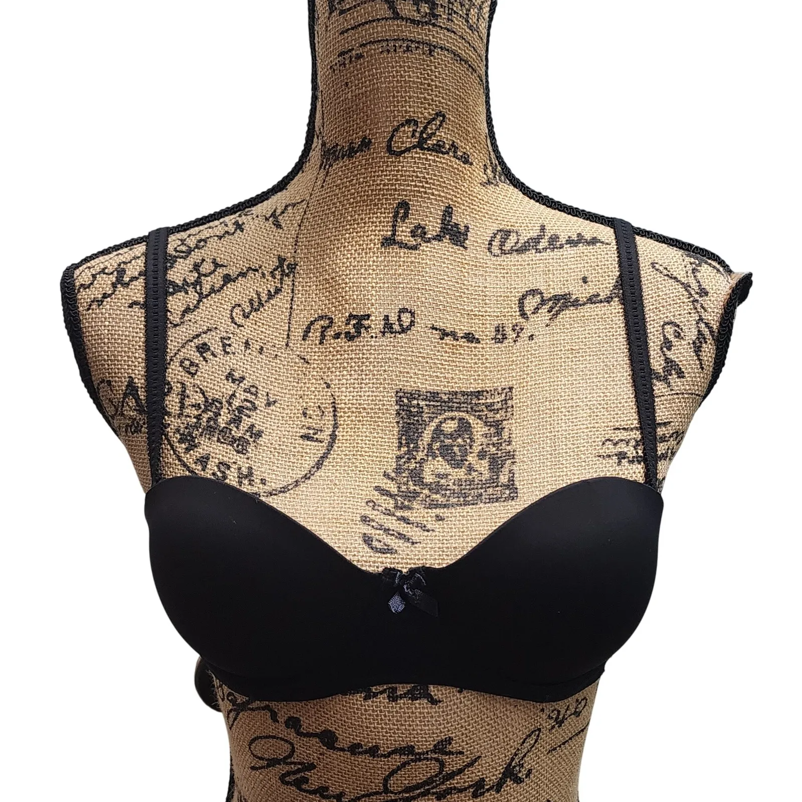 A sleek black strapless bra designed for versatile wear. This bra features a flattering sweetheart neckline and a charming small bow accent at the center gore. The adjustable straps offer flexibility, and the hook-and-eye closure ensures a secure fit. Perfect for formal events, summer dresses, or any outfit requiring a seamless look. Measurements: • Band Size: 34B Type: Bra Style: T-Shirt Bra Department: Women Band Size: 34 Cup Size: B Features: Adjustable Strap, Molded, Seamless Underwire Type: Underwired Pattern: Solid Fabric Type: Blended Fabric Accents: Bow Strap Type: Strapless Material: Nylon Blend Keywords: Tahari Bra, Black Bra, Strapless Bra, Sweetheart Neckline, Women's Bra, 34B Bra, Underwire Bra, Convertible Bra, Formal Wear, Evening Gown, Summer Dress, Seamless Look, Designer Bra