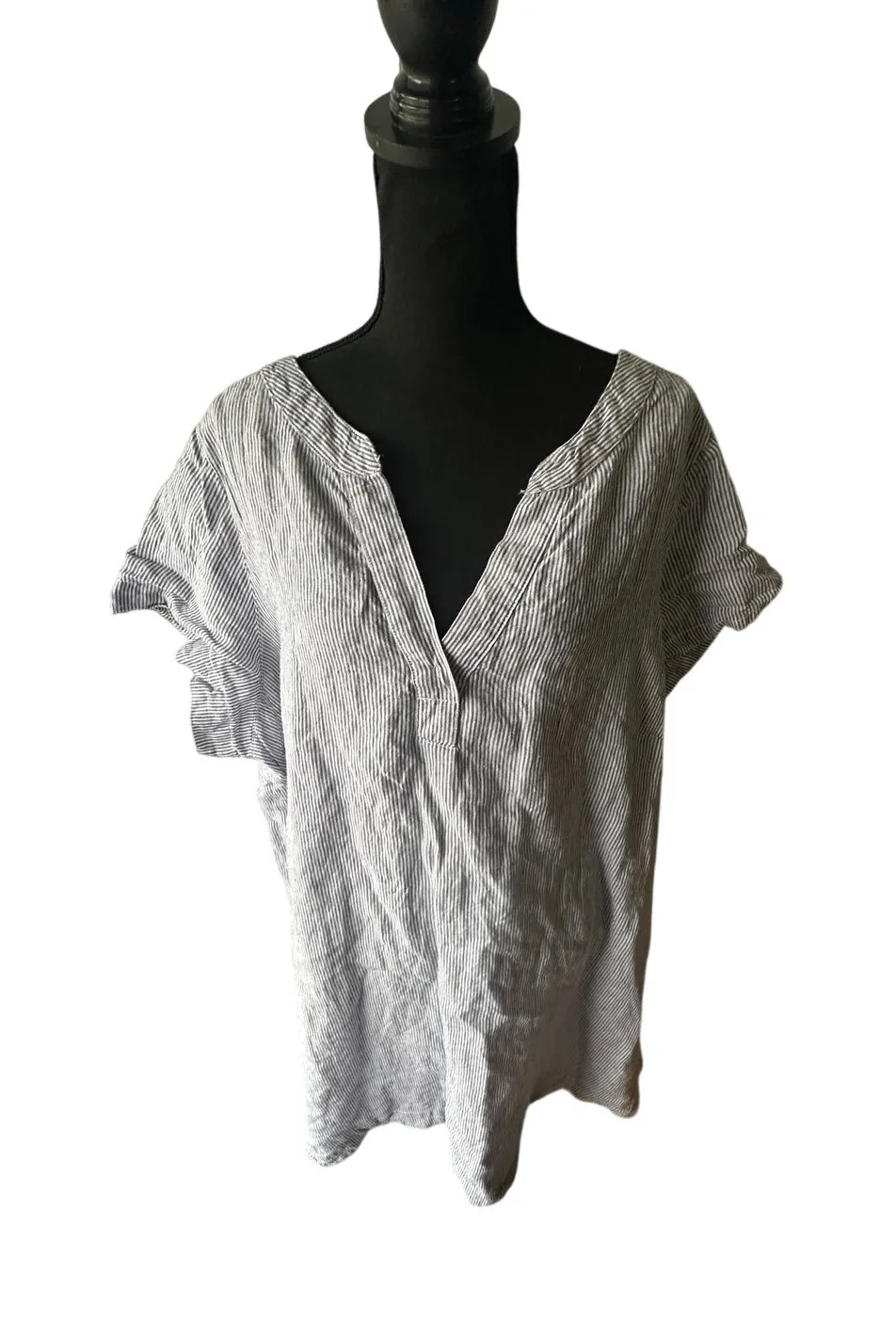 Chic Tahari blue and white striped tunic dress in a breathable linen blend. Flattering V-neckline and relaxed silhouette in size 3X. Lightweight and comfortable, perfect for warm-weather days, travel, or casual outings. Easy pull-on style with timeless stripes for effortless summer dressing. This item is pre-owned and has been gently loved before. I carefully inspect each item and will always disclose any noticeable flaws, so you know exactly what you're getting. I encourage questions—whether it’s about the condition, sizing, or anything else. Transparency is important to me, and I’m happy to provide additional details or photos upon request. I’m always open to making a deal! Reasonable offers are welcome, so don’t hesitate to reach out. Let’s find this item its new home!